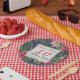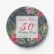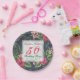 Classic and elegant seamless pattern design made of red Hibiscus flowers and leaves on dark background with three half transparent square tags for your text. Customisable 50th birthday party paper plate. You can easily change text (font, colour, size and position), change transparency of the tags (copy or delete one of them) and change size and position of the background image by clicking the personalise or customisable button. Matching birthday paper napkin and other products. Don't forget the wholde collection of vintage floral patterns for birthday.