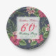 Classic and elegant seamless pattern design made of red Hibiscus flowers and leaves on dark background with three half transparent square tags for your text. Customisable 60th birthday party paper plate. You can easily change text (font, colour, size and position), change transparency of the tags (copy or delete one of them) and change size and position of the background image by clicking the personalise or customisable button. Matching birthday paper napkin and other products. Don't forget the wholde collection of vintage floral patterns for birthday.