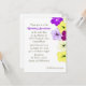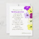 Hibiscus art wedding breakfast invitation. Pretty, original, floral artwork decorates the edge in shades of purple and yellow.