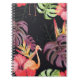 Hibiscus, Flamingos, Watercolor Tropical Pattern. Notebook