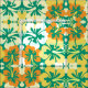 Pattern of hibiscus flowers in a pattern / background in Emerald, lemon sorbet, ivory white and orange colours.