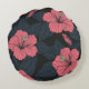 Hibiscus flowers: dark seamless wallpaper. round cushion