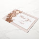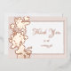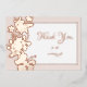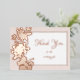 Flat, gold-foil thank you cards with custom text on front and back. Use for weddings or other special events to thank guests to say “thank you for the gift”. The front of the 5x7 inch card contains a swag of hibiscus flowers. The design and text on the front are the foil part of this card. Other options are gold or silver. A light rose pink background, with white panel trimmed in thin lines, carries onto the back of the card where a text template can be customise. Or, delete the text to hand-write a message.