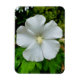 Close up of a white Hibiscus flower with a fully developed pistil following rainfall