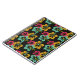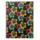 Hibiscus pattern tropical design with colourful flowers against a black background.