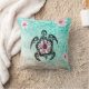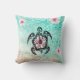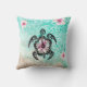 A stylised tribal turtle design with intricate patterns is centred on a turquoise background, surrounded by delicate pink hibiscus flowers. The scene evokes a fun, beachy feel with its blend of nature-inspired elements.