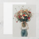A person dressed in casual jeans and a simple white top holds an enormous bouquet of wildflowers that completely obscures their face. The large, colourful arrangement of daisies, poppies, and other vibrant blooms contrasts with the minimalist background and attire, creating a striking visual that emphasises the beauty of nature. The scene exudes a sense of whimsy and serenity, as the flowers take centre stage, symbolising growth, life, and simplicity.