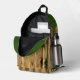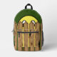 Design features a green background to the image of a shy, smiling emoji hidden behind a wooden fence. Image of fence can be seen on three sides of backpack. Fun design, and sure to start a conversation!