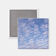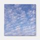 High puffy little clouds mostly obscure a bright blue sky on front. Same mackerel sky image horizontally flipped on back.
