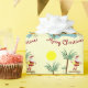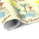 A fun and whimsical design to wrap your holiday gifts to family and friends. Santa on the high diving board with reindeer in the pool and a birdbath nearby under the palm trees.
