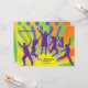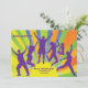 Vibrant, multi-coloured stripes and purple silhouettes of male and female figures create a high energy invitation that's just perfect for a teen's party. Suitable for birthdays, graduations and other festive occasions.