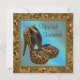 Elegant high heel shoes gold leopard birthday party invitations. This beautiful black and gold leopard birthday party invitation is easily customised for your event by simply choosing the "Customise it!" button to begin adding your event details, font style, font size & colour, and wording. Please note - all of the card and invitation designs you will find on Zazzle are printed graphics with no actual jewels, bows, raised, embossed, or added parts or pieces.