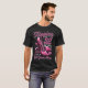 I give wanted to give this a 4 instead of a 5 because these Basic DARK T0shirts run unexpectedly SLIM or Narrow. Which is great if you do not have a potbelly, but I have a paunch. It isn't the shirt's fault that I've got a beer belly. The design and shirt itself is a quality cotton shirt. The color is more of a deep purple, but still a very pretty color. The Basic DARK T-shirts run a bit SLIMMER than the Basic Ts. The neck is a fraction narrower (or seems to be narrower) also. I'm a paunchy middle-aged woman and my neck is 12 inches (31cm) thick and the neckline fell about the same as in the photo of the man, and I had the desire to tug it a bit. So if you're a thick necked man or like loose shirts, be aware these are slimmer shirts. Once I get rid of my lockdown paunch it'll look great. The shirt washed well in cold water with no apparent bleeding. We don't have a dryer, so it hung dry. Did not shrink. Love the colors and the design. The design looks smaller on my shirt than it does on the model on-line. But still, it looks good on the shirt. The printing looks as it does on the model, just the size seems fractionally smaller. Washed garment in cold water, hung dry and design appeared unaffected.