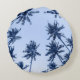 High palm trees, clear blue sky. round cushion