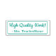 This positive rubber stamp design features the inspiring feedback message "High Quality Work!" and a custom tutor name. It could be used by a school teacher, educator, instructor, or tutor when marking assignments, to indicate that a student has done well.
