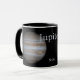 This true-colour simulated view of Jupiter is composed of 4 images taken by NASA's Cassini spacecraft on December 7, 2000. To illustrate what Jupiter would have looked like if the cameras had a field-of-view large enough to capture the entire planet, the cylindrical map was projected onto a globe. The resolution is about 144 kilometres (89 miles) per pixel. Jupiter's moon Europa is casting the shadow on the planet.