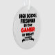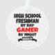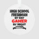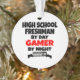 This text design features the trendy phrase "High School Freshman by Day Gamer by Night" and is perfect for any freshman who loves playing computer games or video games.