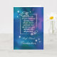 Celebrate this exciting milestone with a graduation card that inspires and uplifts. A meaningful quote about memories, dreams, and the support of loved ones is beautifully framed with classic graduation symbols—a cap, diploma, and shining stars. The crisp white lettering contrasts against a vibrant watercolor background of swirling blue, purple, and green, creating a striking and celebratory design. A perfect way to honour the graduate’s hard work and bright future ahead, whether guy or girl.