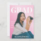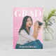 In a straight off the press fashion, announce your high school graduate's achievement with a magazine style announcement card. Use Zazzle's BG Remover, your own photo editing software, or smart phone to remove the background from the photo. Add the graduate's class year, school, and name. The pink background goes from light to dark, providing more emphasis for the student's picture.
