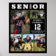 Create a custom sports photo collage poster ideal for high school senior night recognition, sports awards ceremony or banquet or graduation party decor utilizing this easy-to-upload photo collage template showcasing 5 pictures in various shapes and sizes with the title SENIOR incorporating their class year and your athlete's name, jersey number or school initials, school name and/or mascot name or your custom text in your choice of text and background colors you can change to school colors in EDIT (shown with white text on black). OPTIONS: The sample is shown in an 18x24" size; other sizes are available (choose Custom Size for even borders by changing the height and width with equal number of inches AFTER clicking the UNLOCK icon that looks like a chain link next to the Height and Width fields). You can also transfer the design to a foam board, banner or other products. NEED IT FAST? Consider ordering the digital download file under FORMAT on the ordering page to print locally. ASSISTANCE: For design assistance, contact the designer BEFORE ORDERING via the Zazzle Chat MESSAGE tab or email makeitaboutyoustore@gmail.com.