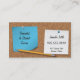 This unique, professional teacher business card is suited for elementary, intermediate, and secondary teachers. It features a blue and white post it or sticky notes and a torn piece of note paper stuck to cork board with round push pins and a pencil and paperclips on the writing surface. This business card is also perfect for office clerks, receptionists, office workers, students looking for summer work, professionals working at a desk, writers, professors, human resources, and anyone looking for a unique and fun office stationary business card. ©2012 Pam's Designs.