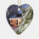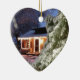 High Sierra Holiday. Original photo of a beautiful home covered in snow, surrounded by a white picket fence and a lone pine tree. Located in Lone Pine, CA.