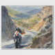A stunning art piece capturing a thrilling motorcycle ride through a mountainous landscape. The vibrant scene showcases the intensity of speed and the natural beauty of winding mountain roads.
