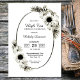 An elegant rustic black and white floral high tea birthday celebration invitation featuring sunflowers and daisies arranged on an oval frame. This invitation is perfect for those who prefer to celebrate during the day.