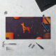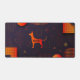 This is an abstract desk mat with a high tech feel due to its geometric shapes. There is also a large breed dog silhouette with a customisable name.