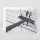 Industrial black and white photograph of an electric post, also known as electric pillar or utility pole. Pillar and cables make parallel diagonals over the photo. Some wires are hanging freely, breaking the pattern. There is also a streetlamp on the pole. The pillar is made of worn-out concrete. The photo represents high voltage electricity. Original photo by dandellion Kimban.