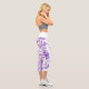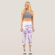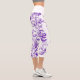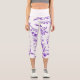 A pair of high-waisted capris adorned with delicate floral patterns interwoven with flying butterflies. Set against a backdrop of vibrant butterflies, soft pastel flowers in lavender and purple, this design exudes a dreamy allure. The ethereal blend of vibrant florals and beautiful butterflies creates a harmonious and whimsical aesthetic, perfect for those who seek comfort and elegance in their wardrobe.