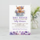 Adorable baby highland cow in a tub of water and flowers. Baby is sticking tongue out; so freakin' cute! Customise with your party's info and details.