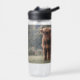 Highland cow calf autumn grass field water bottle