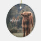Highland cow calf autumn grass monogram initial ceramic tree decoration