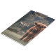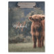 Highland cow calf autumn grass field photograph. Stunning young calf of highland scottish cattle on an autumn grassy field with muted colours. Beautiful dark hairy orange coat contrasting with light yellow green grass and trees in bokeh in background. Custom personalizable monogram with your name and inital on the left.