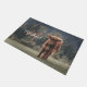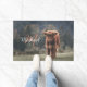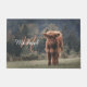 Highland cow calf autumn grass field photograph. Stunning young calf of highland scottish cattle on an autumn grassy field with muted colours. Beautiful dark hairy orange coat contrasting with light yellow green grass and trees in bokeh in background. Custom personalizable monogram with your name and inital on the left.
