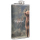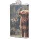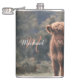 Highland cow calf autumn grass field photograph. Stunning young calf of highland scottish cattle on an autumn grassy field with muted colours. Beautiful dark hairy orange coat contrasting with light yellow green grass and trees in bokeh in background. Custom personalizable monogram with your name and inital on the left.