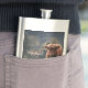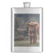 Highland cow calf autumn grass monogram initial hip flask