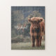 Highland cow calf autumn grass monogram initial jigsaw puzzle