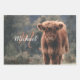 Highland cow calf autumn grass monogram initial wrapping paper sheet