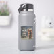 Highland cow calf monogram first birthday party. Stunning young calf of highland scottish cattle on an autumn grassy field with muted colours. Beautiful dark hairy orange coat contrasting with light yellow green grass and trees in bokeh in background. Custom personalizable monogram with your name and initial on the left. Everything for the first birthday of your child, invitations, paper plates, cups and more.