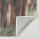 Highland cow calf monogram first birthday party. Stunning young calf of highland scottish cattle on an autumn grassy field with muted colours. Beautiful dark hairy orange coat contrasting with light yellow green grass and trees in bokeh in background. Custom personalizable monogram with your name and initial on the left. Everything for the first birthday of your child, invitations, paper plates, cups and more.