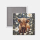 Highland Cow Elegant White Floral Magnet
