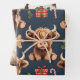 Cute Highland Cow Festive Santa Christmas Wrapping Paper Sheets to celebrate the season. Makes a great gift for animal lovers and cow collectors.