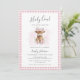 Celebrate the upcoming arrival of a precious baby girl with this charming “Holy Cow!” baby shower invitation. Featuring an adorable watercolor baby calf wearing a boho flower crown, surrounded by soft pink florals and a classic pink gingham border, this invitation is perfect for a sweet western or farm themed baby shower.