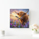 Highland Cow in a field of colourful flowers Square Wall Clock