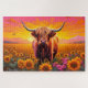 Highland Cow in Field of Sunflowers at Dawn Jigsaw Puzzle