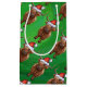 Highland Cow in Santa Hat Pattern On Green Small Gift Bag
