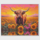 Cute Highland Cow Pink and Gold Sunflowers at sunrise