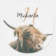 Highland cow portrait custom name initial monogram. Portrait photograph of a majestic orange brown highland cattle on a foggy day with white background.
